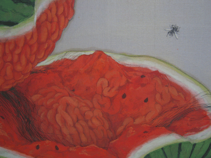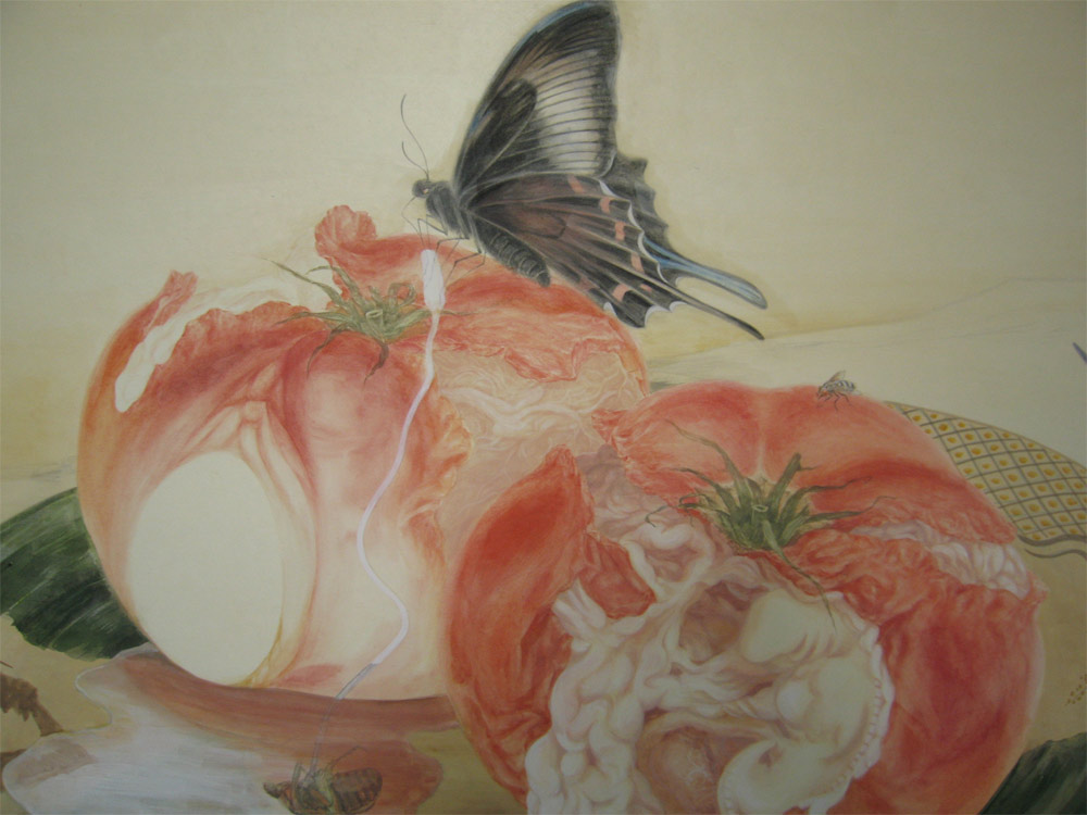 第6回世界絵画大賞展にて、協賛社賞を受賞いたしました。 下記の期間展示されるので、よかったら足を運んでくださいませ。 会期:2010年10月24日(日)~2010年11月3日(水) AM 9:30~PM 9:00(最終日はPM 3:00まで) 会場:世界堂新宿本店6F特設会場 http://www.sekaido.co.jp/prize06_kekka.html#top あと、大阪芸術大学主催の国際アートトリエンナーレにも入選しました。展示期間は過ぎちゃったんですが、お知らせまで。 大阪芸大のホームページにて作品を見ることは出来ます。http://www.osaka-geidai.ac.jp/geidai/laboratory/leonardo/index.html PR 千葉市美術館で田中一村展を見てきました。 遠いけど、今までなかなか本物を見る機会が無かったので、これは行くしかない!と思いはるばる高速バスで行ってきました。 やー、すごかった。 画集では見たことの無い昔の作品(なんと小学生の時のものから)や、今回初めて発見され展示された軍鶏図、頼まれて描いた屏風絵や天上画、有名な奄美大島での作品など、かなりの点数を生で鑑賞出来ました(後で図録見たら250点だった)。しかし、若い頃の作品が新鮮で面白かったのでじっくり見すぎて、最後の方は閉館時間ギリギリになってしまい、奄美大島時代の大作を流し見することに...(涙)1時間半じゃ足りなかった...、これから、行こうと思っている人は気を付けてね!あと1時間は欲しかった。 田中一村は、作品もさることながら、その人生もよく語られます。 50歳で単身奄美大島に渡り、極貧のなか本当に一途に純粋に自らの人生をすべて懸けて絵を描いた画家です。生前それらの作品を公表する機会もなく無名のまま没しました。粗末な借家で夕食の準備中に心不全で倒れ、床には刻んだ野菜の入ったボールがころがっていたという。生涯独身だった一村の、誰にも看取られない最期だった。(享年69歳) 一村は、1908年(明治41)、栃木に生まれた。彫刻家の父の影響で幼い頃から書画に親しんでおり、7才の時には児童画で天皇賞を受賞しています。その頃の墨絵も展示されていたが、かなりの腕前、小学1年生の作品とは思えない筆捌き、書も勢いのある良い字でした。神童と言われていたのも納得。父は幼い孝(一村の本名)の画才を見抜き、”米邨”という画号を与えたが、それが父”稲邨”の子だからと言うのが面白い。 そして、17才にして「全国美術家名鑑」に名を連ね、(十代で名鑑に名前があるのは彼だけだった)翌年には東京美術学校(今の東京芸大)に入学、同期には東山魁夷、橋本明治、加藤栄三らがいた。しかし一村は僅か三ヶ月で退学し、誰にも師事することなく独学で自分の信じる画道を突き進んでいく。東京の貧しい借家暮らしで肉親を次々に失い、千葉に移り住み、野菜を育て、鶏を飼い絵を描いていた一村は、40才頃から、精力的に公募展に出品していくようになる。しかし1947年に川端龍子主催の青龍展に入選するが、龍子と意見が合わず離れていったし、また日展、院展では認められず相次いで落選し、中央画壇への絶望を深めた。 日曜美術館を見て知ったが、1958年(昭和33)に自分の画人人生の中で描くことが出来た”悔い無き絵”が院展で落選し、その絵をナタを持ってきて、壊し火を付けて燃やしてしまったそうだ。その絵の白黒の写真が今も残っているが、もう色の付いたそれを見ることは叶わない。一村は燃やしながら「引きずりたくないから断ち切るんだ」と言っていたそうだ。同年、一村は奄美大島に渡ります。 以下、奄美大島に渡った翌年3月中島義貞氏あての手紙 『いま私の全神経は、絵に向いています。さわられても、叩かれたように驚きます。実に楽しく絵をかいています。絵が楽しくなると正反対に、私の言動は狂人に近くなります。オランダのゴッホも、フランスのセザンヌも、執筆中の夏目漱石も、画室に於ける横山大観先生も、狂人同様であったことを想起して下さい。 いま私が、この南の島に来ているのは、歓呼の声に送られてきているのでもなければ、人生修行や絵の勉強にきているのでもありません。私の絵かきとしての、生涯の最後を飾る絵をかくためにきていることが、はっきりしました。 皆様は、私が一人ならば、何とか絵を売って、この南の島で生活して行くだろうと、簡単に考えていらっしゃる様ですが、未知の風景、植物、動物を調査し、写生し、絵に構成し、それを名画の水準まで高めた上にさらに自分で売る程の精力の余裕が、私にあると思し召されて居るのでしょうか。私には猿回しや旅芸人のような生活力はありません。 きょうは、山からヨモギを取ってきて、スイトンに入れ、黒砂糖をかけて食べました。千葉寺で米を買う金がなく、スイトンのゆで汁から丼(どんぶり)を洗った水まで、姉と一緒に飲んで勉強したことを思い出し、泣きました。』 大島紬の染色工として働きながら、一村は絵を描き続けた。地元の人の話によると、ハブが出るから危ないと言っても森に入ってゆき、「木も鳥もすべてが一緒に無いといかん」と言ってスケッチをしてい