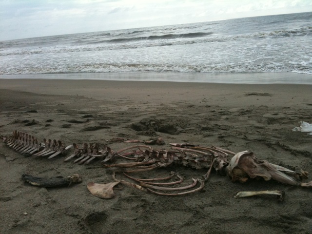 前の日記で書いていた、九十九里浜の続きなんですが、 一村の展示を見に行った後、九十九里浜に行ってきました。 相方の趣味の”漂着物拾い”に同行した次第なのです。 彼曰く、九十九里浜はその漂着物拾いに良い場所らしいです。 調べるとそういう浜歩きをして色んな物を拾う遊びをビーチコーミングと言うらしいのですが、彼は基本的にはビーチに限らず生物を拾い、その骨を取り出し、組み立てる、という事が楽しいらしく、魚等の細か〜イ骨も(タンパク質をキレイに落とすとバラバラになる)一つ一つパズルの様に組み立てて標本にしています。 それが、結構きれいなんです。 しかし、肉がついた状態はちょっとグロテスクですけどね。 臭いもスゴい・・・ というのも、浜に行っていきなり見つけてしまったんです。 うち上がった骸を。 私は始め、マグロ!?と思ったんですが、歯があったしヒレもマグロとは違うという事で、小さいクジラかイルカだろうと思います。 もう人生で初めてこんな量のウジ虫を見ましたよ。奴らはワアワアお祭り状態です。 どん欲に食って踊ってました・・・。 そして先ほども言いましたが、臭い!死臭です。 発酵臭”以外”の朽ちていく臭いは強烈なものがありました。目と鼻を覆いたくなる。 やっぱり、ほ乳類と魚は質が違う感じがします。 相方は、「うーん頭だけ持って帰るか」とつぶやいていたので、 「いやいや!ここ迄着たら丸ごとイこうよ」と私がけしかけまして 全身解体を決行。といってもやるのは相方ですがw 発見したのは夕方だったので次の日の早朝、自炊可能だったペンションの包丁を2丁とコンビニで大きなゴミ袋、ゴム手袋、私の提案で塩1kg(塩漬けにしたら臭いが軽減するんじゃないかと思って)を持って砂浜へ。 臭い対策に口には手ぬぐいを巻いて、手袋をして包丁でさばいてゆく。 魚とは違い、骨に結構しっかり筋肉が付いていて解体しづらそうでした。 豚とか牛のさばき方知ってるといいのかも。 私は手袋持ってなかったのでふらふらしつつ見学。でも骨を砂で研いで海で洗うのはかなり奮闘しました、そして買っといて良かったフレグランススプレー。 かなり一生懸命肉を落としましたが、臭いがしつこく此れを持って帰るのはかなり大変、電車に乗ったら迷惑です。それでフレグランススプレーをふりかけて何重にも袋で包む。それでも、レンタカーの中は死臭くさく、ずっと窓は開けてました。 一番下の写真は骨を構造通りに置いてみたところです。 (人によってはグロテスク写真につき、注意!) 初めて、マジマジと骨の造形を見ましたが、よく出来てるな〜と感心しました。 脊椎の組み合わさり方がすごい柔軟に上下にシなれるような形をちゃんとしている。 一つ一つの部品は飛行機みたい これが、自然に出来ているとは・・・ 他の場所ではウニの骨を拾いましたが、スゴく綺麗だったので何とか樹脂とか使って帯留めに加工したいと目論んでおります。 楽しかったので、またやりたい、ハマるのか私。 ハマってしまうのも悪くない、うん。 PR 無事帰国しました。色々と衝撃的なものを見てきましたよ…。 まず、最近のから。 「EQUUS」。 ロンドンで見た舞台の名前なんですが。何か日本でも少し話題になってるんですって?発端は去年の夏に友達の携帯に送られてきたTUTAYAニュース。”ハリーが全裸で馬に乗って快感を感じる舞台がやる!”とな。そんときは唯、マジで~と爆笑して済ませていたのだが・・・。行きの飛行機の中で貰った英語の新聞に白い馬と映ってるダニエルラドクリフ君の写真がデカデカと!こ…これは!例のアレじゃないかという事で、記事を読んでみると、ロンドンで2月27日から公演される。とな。え…私達27日からロンドンに行くんですけど!!それが2月4日の話。 そして色んな国を旅した後ロンドンへ。チケットを売れ残ったチケットを安く売っているチケッツという窓口に行くがsold out。他も2~3軒まわったが何処も売切れ、話題作ぽいし当日とか無理か~ と泣く泣く諦めた。しかし、次の日ふらふらと歩いてるとEQUUSが公演されている劇場を発見。近づいて行ってみるとBoxOffice(劇場ごとにある窓口)が開いているとの表示、もしやと聞いてみると席があるとの事!しかもかなり前のほう。£49(12000円)と高かったけど即買いして、見ちゃいました♪いや~衝撃的なものを見てしまいましたよ本当に。ハリーの全てを見てしまった(笑。舞台自体はクールでかっこよかったです、演出とかシンプルで良かった。馬の表現とか如何するんだろうと思っていたけど、あれならGoodです。6頭の馬が出てくるのですが全て役者が頭に馬の金属で出来た仮面(?)を被り、足にひずめの靴を履き演技するのだが、その動きが上手い。馬に見えてくる。別に内容はツタヤニュースみたいな快感とかでは無く、ヒステリックな両親の元で育ったラドクリフは心を閉ざしてしまう、そして精神科医の元へ…(全て劇は英語なので曖昧な理解…汗)。 はっ、今ネッ